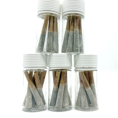 click to enlargeDiamond Coated Dogwalkers Each jar contains seven prerolls that are 1/2 gram each. Don’t let the size fool you. These mini Pre-Rolls are coated in potent cannabis oil and dusted with THCa diamonds for a powerful punch in a compact form. Perfect for a quick sesh or a walk around the block, each Dogwalker is packed with premium flower for a smooth, flavorful burn and a high that hits way above its weight.Select Size/Weight: 1 Jar for$8 5 jars for$35.00$30-15%Quantity: Add to Cart